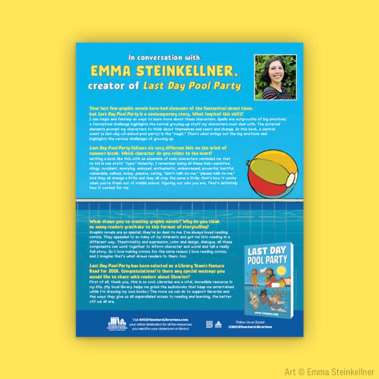 > Resources > Last Day Pool Party Creator Q&A Last Day Pool Party In conversation with Emma Steinkellner, creator of Last Day Pool Party. Download Now Related Books Ages 8-12 years Last Day Pool Party Emma Steinkellner