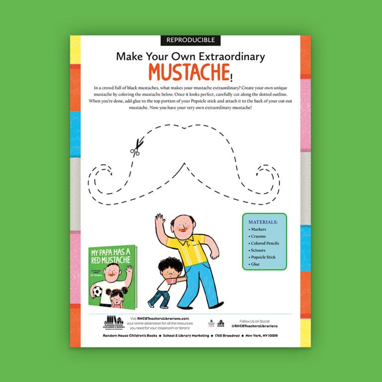Reproducible activity for My Papa Has a Red Mustache by Leo Espinosa, a clever and heartwarming picture book that celebrates a child’s boundless love for a parent and the unique traits that make parents extraordinary to their kids.